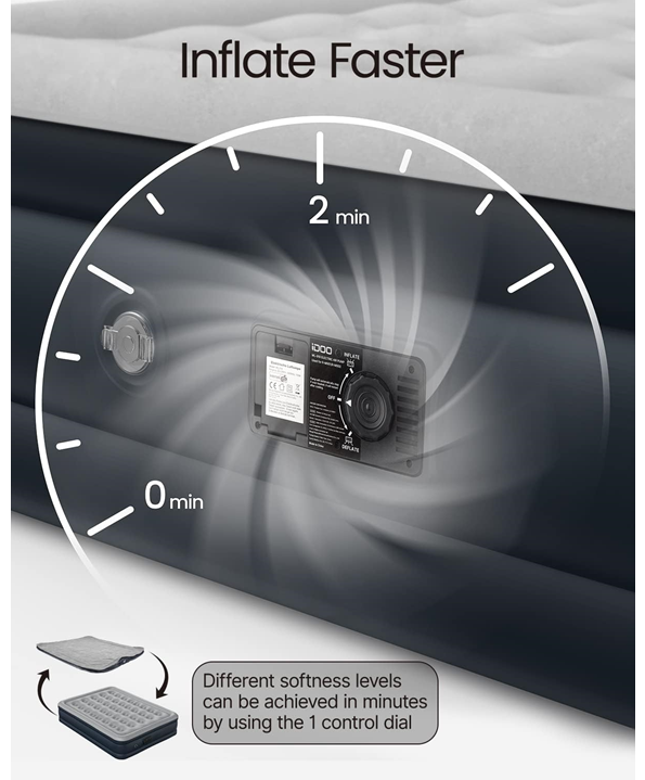 iDOO air bed with built-in electic pump inflates/deflates the air mattress within 3-4 mins to achieve your desired comfort level with the switch of a button. Whether you like a firm/soft air mattress, iDOO has you covered.