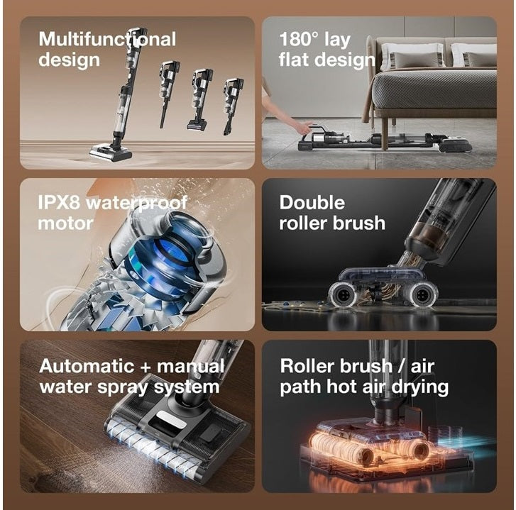 Includes wet & dry vacuum, mite remover, upholstery cleaner, crevice tool, and handheld vacuum โ perfect for cleaning floors, carpets, mattresses, sofas, furniture, and tight corners. -