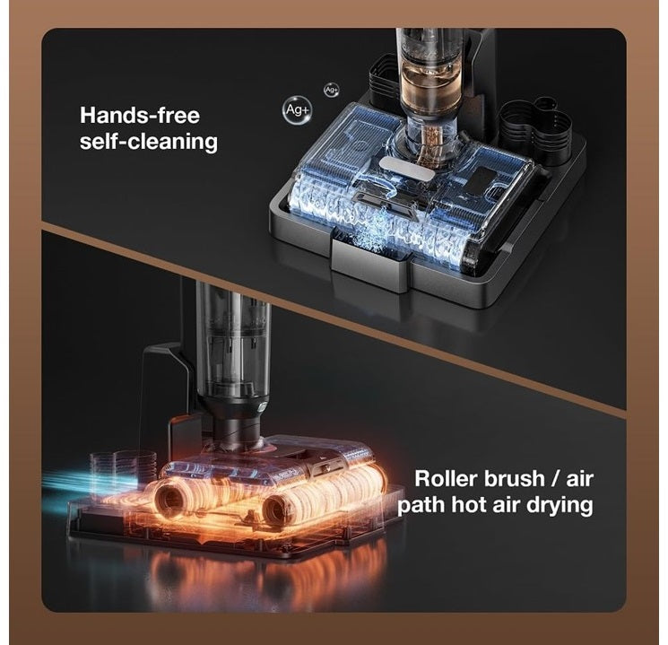 Features 3 cleaning modes: Auto Mode, Floor Mode, and Carpet Mode โ efficiently handles different surfaces with a single device. -