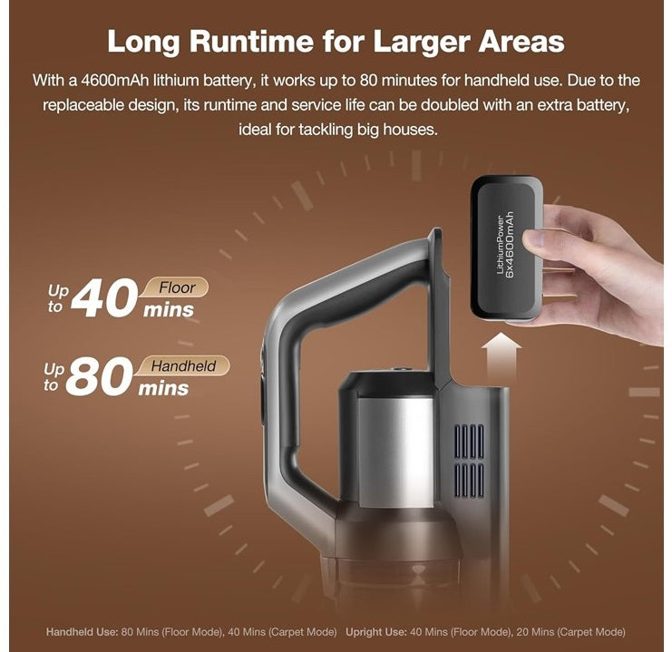 Effortlessly cleans under beds, sofas, and furniture thanks to its flexible flat-lay structure.